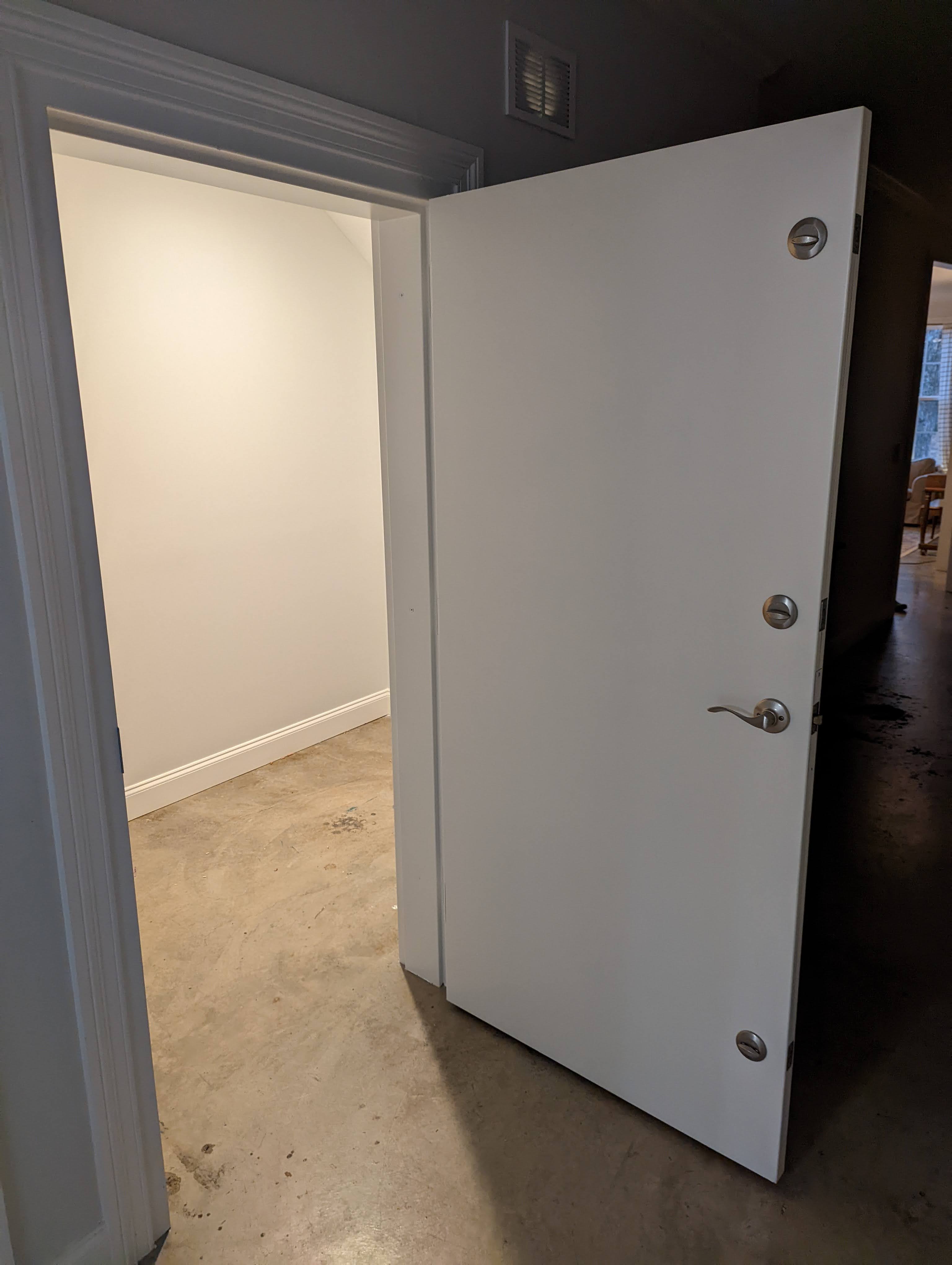 To help with the sensory overwhelm and anxiety of autism, the family decided to use soundproofing insulation and solid core doors between all of the bedrooms.